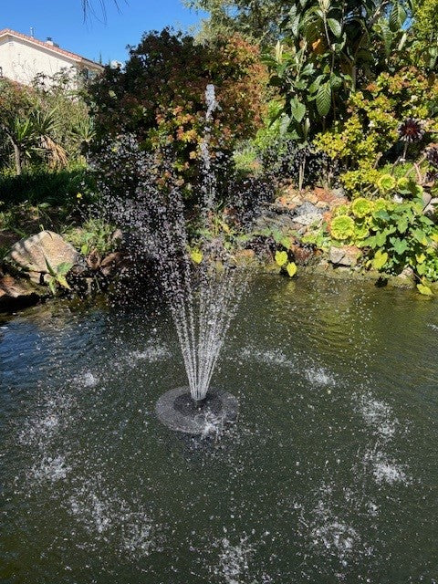 - This is a floating fountain pump requiring around three feet depth of water. We also sell waterfall pumps. New in 2024, this unique floating solar fountain pump kit solves many problems people experience when installing fountains in their ponds. As it floats and does not need to be placed on a flat surface in your pond or raised closer to the surface, it will not topple over, and it floats up and down should the water level change.