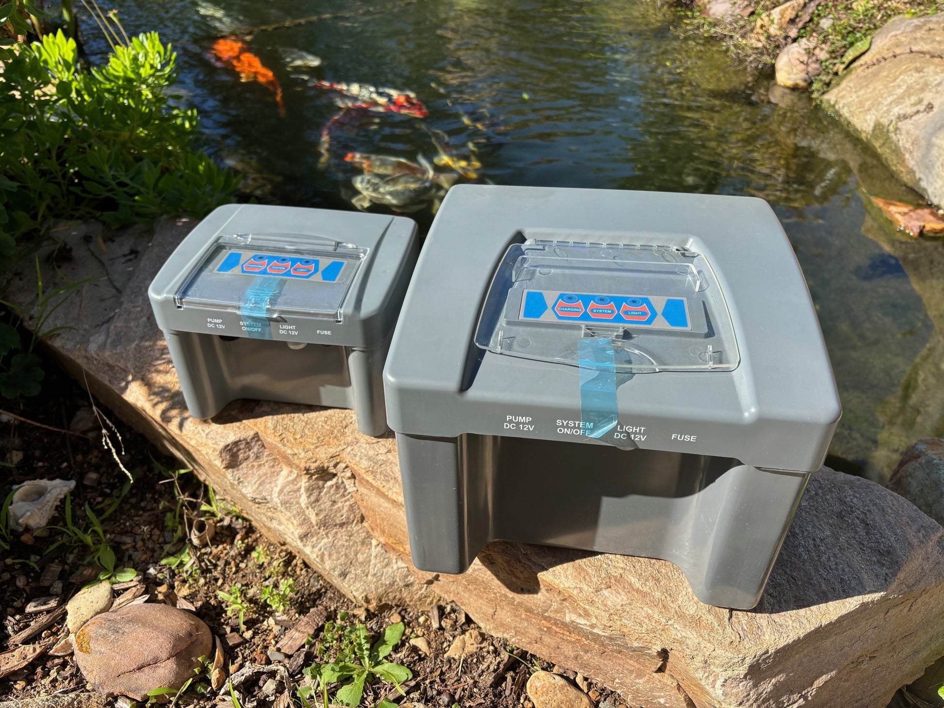- There are two 12V output ports for one of our solar submersible pumps, and a waterproof LED light we sell - see Accessories in the drop down menu.